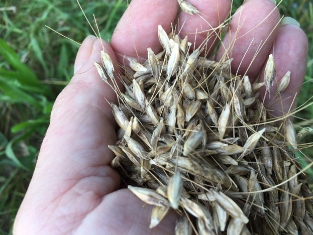 Om de harde vlies en naalden te verwijderen moet het graan gepeld worden. Hiervoor hebben we 50 kg Eenkoorn voor proef aangeboden bij Jan van Riet te Oploo. Jan heeft een pelmachine waarop hij Spelt op pelt voor de graancirkel maar het was niet zeker of met deze machine ook Eenkoorn gepeld kon worden. Mogelijk lukte het met het plaatsen van andere zeven en het aanpassen van de instellingen. Ondanks alle aanpassingen lukte het niet om de proefpartij naar tevredenheid te pellen. Door de lange naalden die vast aan de kaft zitten liep de machine regelmatig vast en moest deze er met de hand doorheen gewerkt worden. Na deze poging zijn we uitgeweken naar de pellerij van Jan Steverink in Silvolde. Vanaf Silvolde is de partij graan naar de Bovenste Plasmolen gebracht. De totale partij bestond uit 575 kg Eenkoorn en 200 kg Emmer (hele korrel) en circa 200 kg gebroken Eenkoorn en circa 60 kg gebroken Emmer, in totaal 1035 kg.